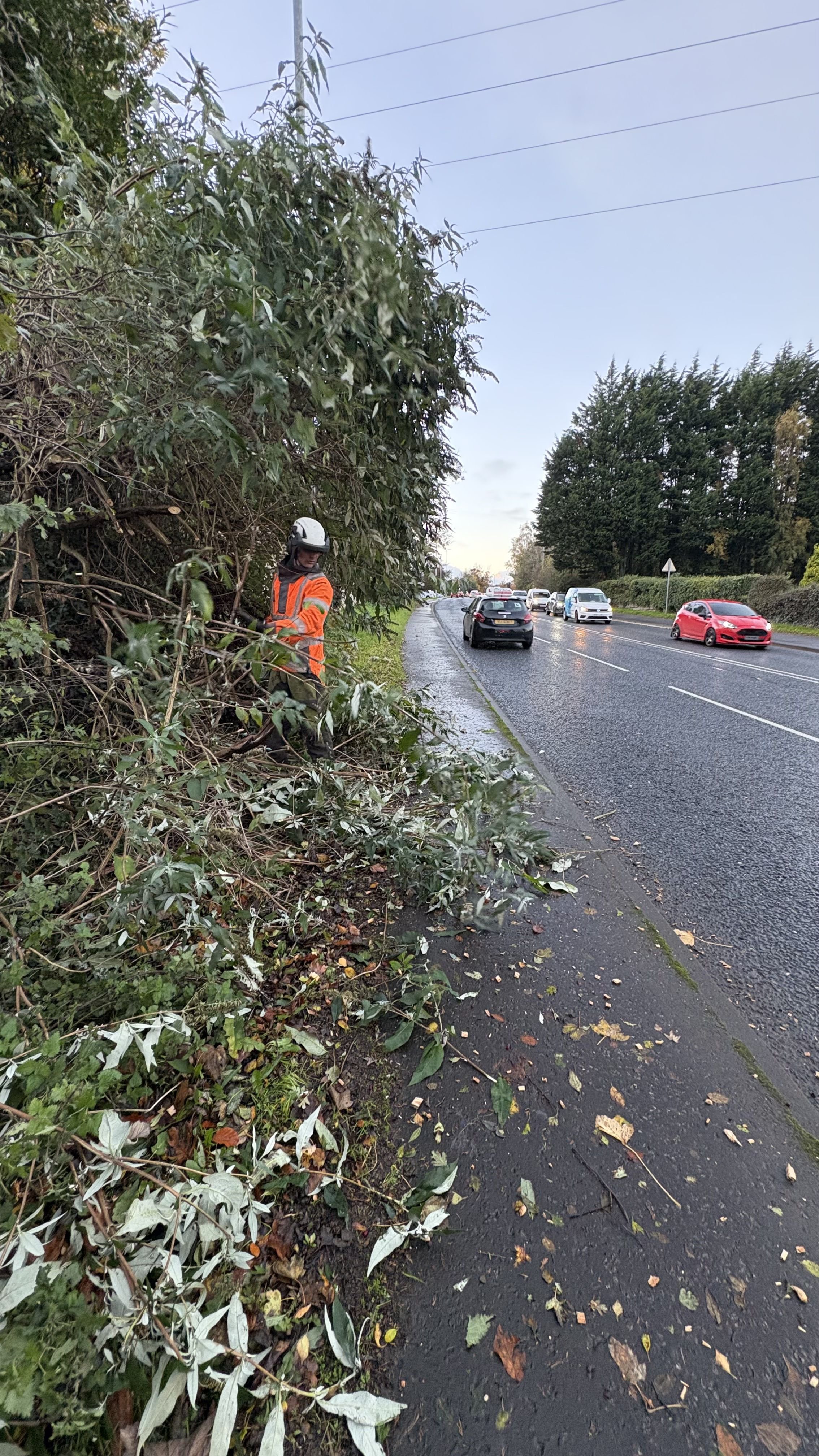 Clearance of fallen trees, hanging branches and wind damage following bad weather.